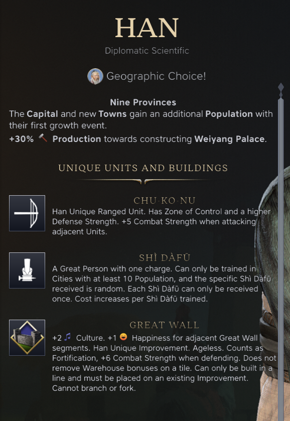- Science Focus: Pairing Confucius (who generates Science from Specialists and city growth) with Han China (which boosts population and Influence) creates an unstoppable tech powerhouse